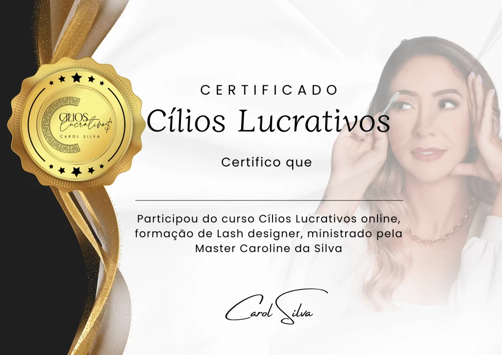 Com o Curso Cílios Lucrativos, você vai aprender todas as técnicas necessárias para se destacar no mercado, desde os fundamentos até o marketing pessoal, pra você atingir uma renda de ao menos R$ 10.000,00 ao mês